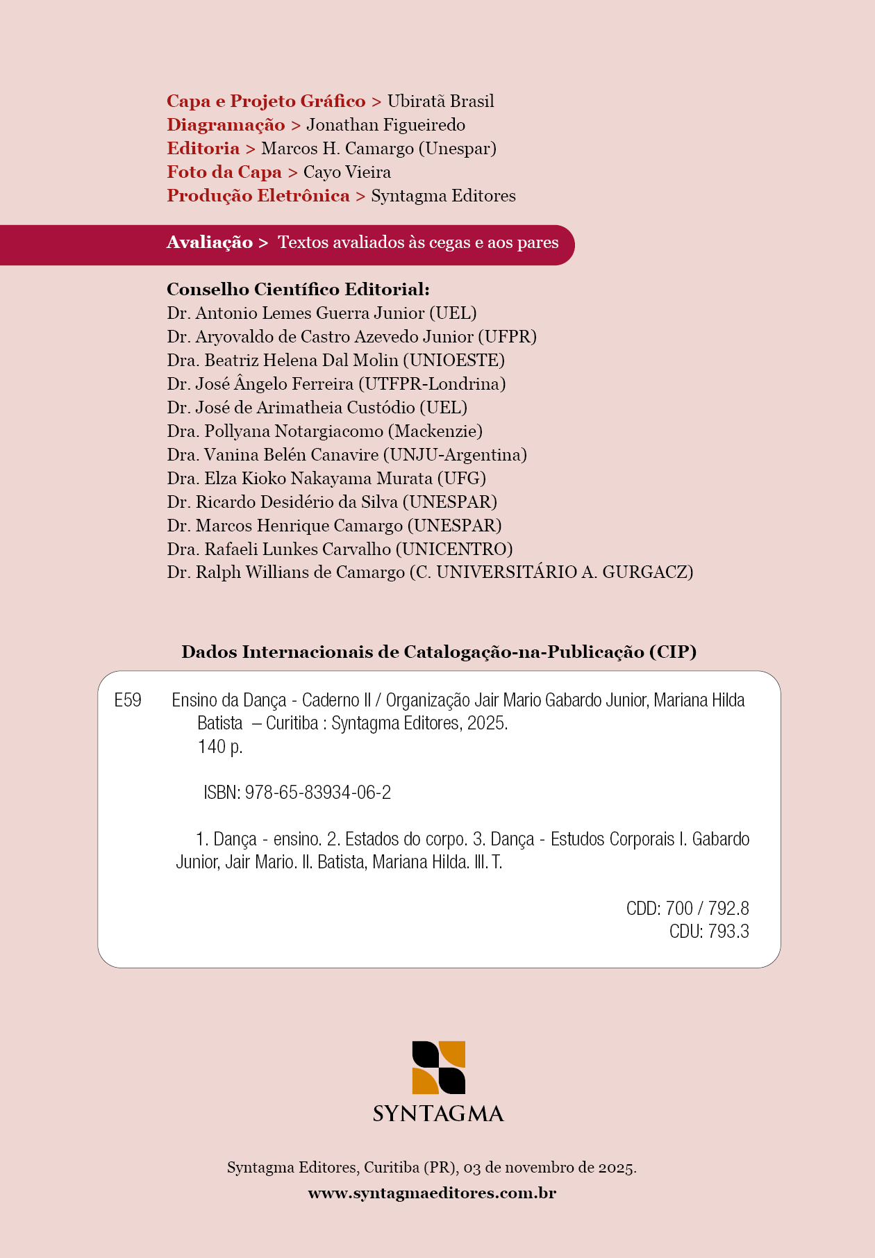 O presente livro, intitulado “Ensino da Dança - Caderno II”, se apresenta como a segunda publicação de textos, inéditos e/ou revisitados, vinculados às pesquisas de docentes do Curso de Licenciatura em Dança da Universidade Estadual do Paraná (UNESPAR), além de contar com escritas de autoras que, ao longo dos anos, têm tecido parcerias investigativas no campo artístico-pedagógico como profissionais egressas desse mesmo curso.